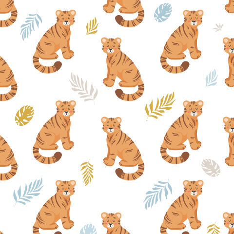 тигр, животное, тропический, сафари, милый, пальма, монстера, листья, лев, зоопарк, кошка, природа, африка, дети, пижамы, животные, белый, тропики, лето, ребенок, по-детски, экзотика, цирк, красиво, мультяшный,