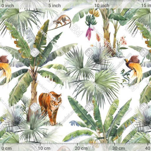 Тропический принт с тигром. Банановые пальмы. by Anastasia Lembrik 366 DPI