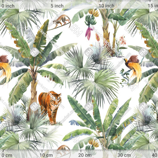 Тропический принт с тигром. Банановые пальмы. by Anastasia Lembrik 385 DPI