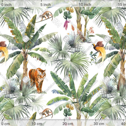 Тропический принт с тигром. Банановые пальмы. by Anastasia Lembrik 411 DPI