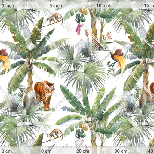 Тропический принт с тигром. Банановые пальмы. by Anastasia Lembrik 423 DPI