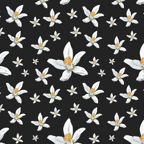 Цветы апельсина на черном акварель