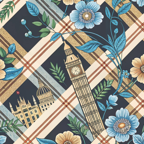 Цветы и здания на диагональной клетке