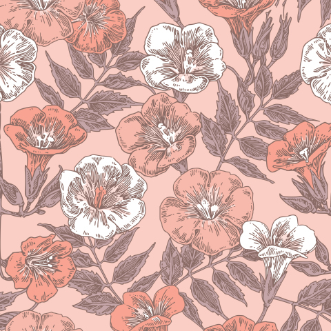 цветочный принт кампсис лиана летний цветы паттерн векторный дизайн красные светлый листья розовый нежный монохромный лепестки ретро
