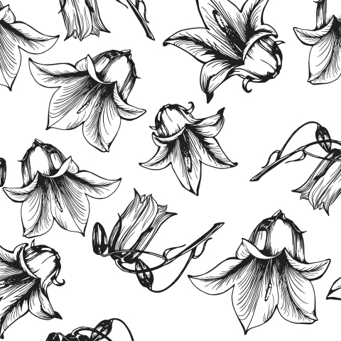 цветы, колокольчики, графика, чб, орнамент, растения, бутон, линия