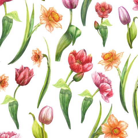Тюльпаны и нарциссы на белом фоне