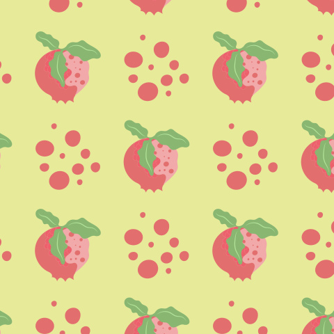 Гранат фрукты сад фруктовый яркий сочный листья горошек ветка гроздь лето весна орнамент декоративный природа красный зеленый геометрический вектор минималистичный желтый фон фон