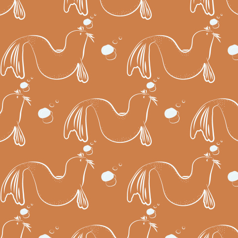 море океан морской котик оранжевый природа животное вода волны белый иллюстрация вектор декоративный мультяшный для детей линейный