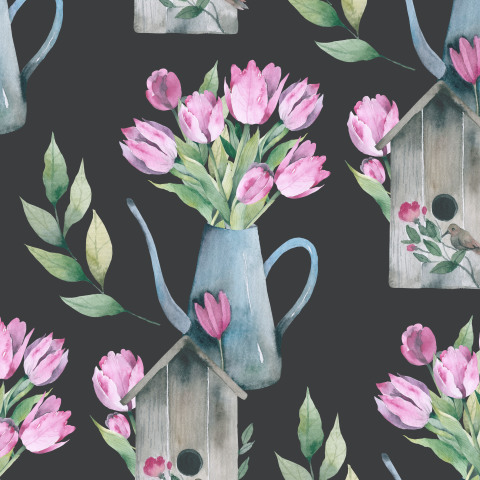 тюльпан, цветочный, акварель, цветы, лето, весна, весенний