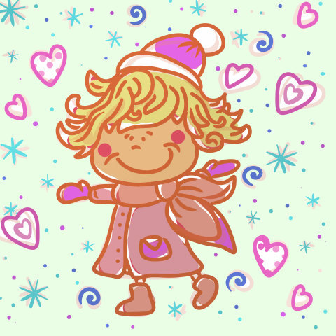 девочка, осень, зима, сердечки, мультяшная, смешная, юмор, яркая, узор, бесконечный, иллюстрация, векторная, рисунок,рождество