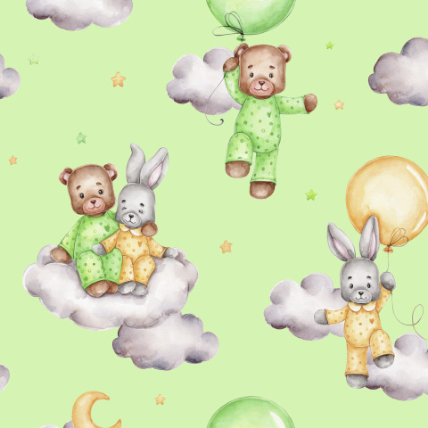 Веселые мишка и зайка (на зеленом фоне)
