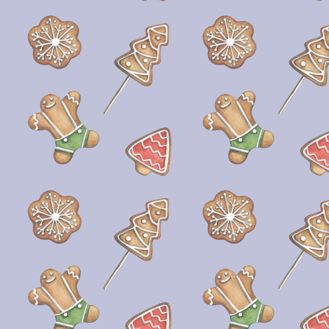 Веселые рождественские прянички на сиреневом фоне
