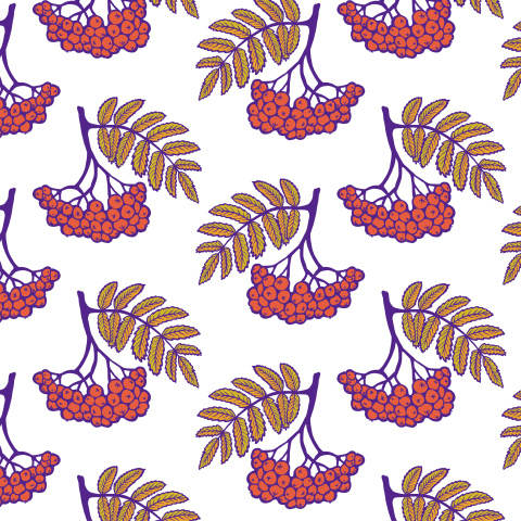 Ветка рябины с листьями. Осенний узор