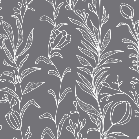 Ветвистые цветы (контур) на сером фоне