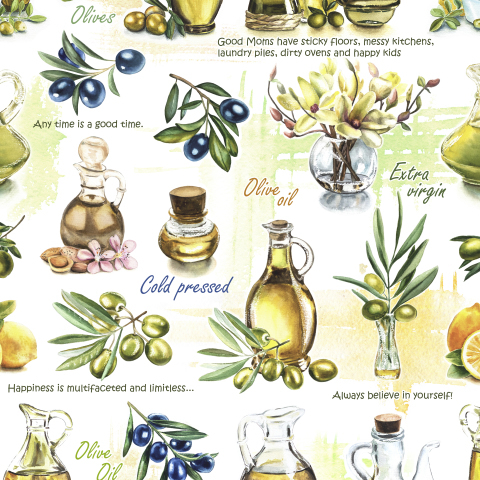 seamless pattern olives; seamless watercolor illustration olive oil; olive bottles; seamless wallpaper; seamless floral pattern; wallpaper design; wrapping paper pattern; olives napkin design; digital paper; drawing olives; branch of olives and lemon; drawing for kitchen wallpaper; illustration of bottles with olive oil; olives design for towels; design template for oilcloth; fabric design; textile pattern; watercolor painting; fresh food; botanical illustration; garden; leaves; nature; hand drawn green and black olives illustration; black olives; food cooking; menu design; greek green olives; extra virgin; olive oil; text; flowers; Isolated objects; repeating background; artwork vegetable; vintage; italian; print ornament; mediterranean; card drawing design; harvest; cuisine; greece; aquarelle olive tree; frame or border