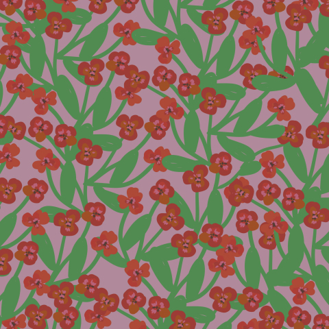 Яркие простые красные цветы на сиреневом фоне. Милый минималистичный узор