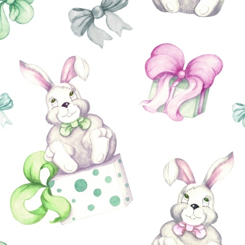Детский зайчик кролик розовый зелёный подарок бант бантик