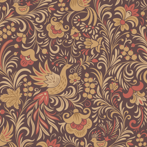 хохлома русский стиль птицы жар-птица сказка завитки цветы