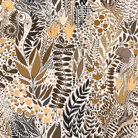 Желто-коричневый узор из травинок и листочков