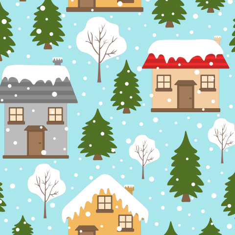 Зимние домики и деревья