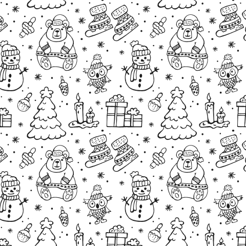 Зимний черно-белый принт. Рождество.