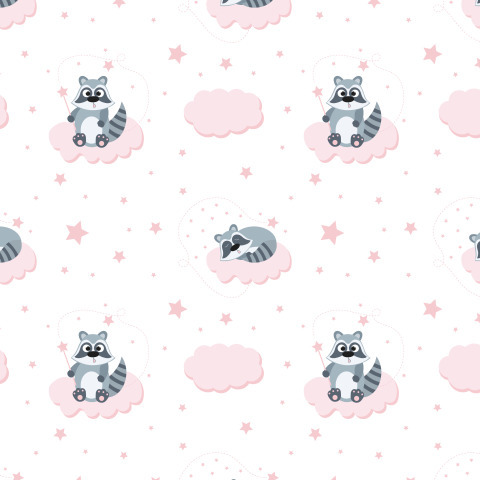 Енот, звезды, розовый, серый, сон, спит, полет, волшебный, детский, космос, туча, тучка, небо